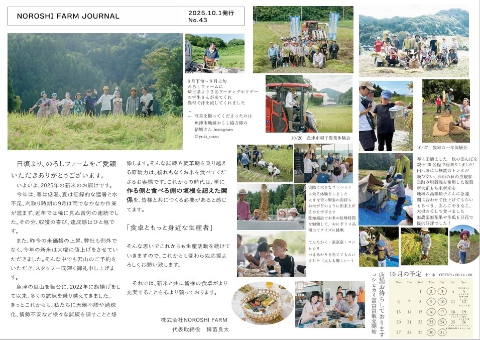2025.10.08 News NOROSHI FARM JOURNAL 2025.09 TOPお知らせ・ブログNOROSHI FARM JOURNAL 2025.09 いつもご覧くださりありがとうございますこちらから この記事をシェアする PREVBACK TO LIST