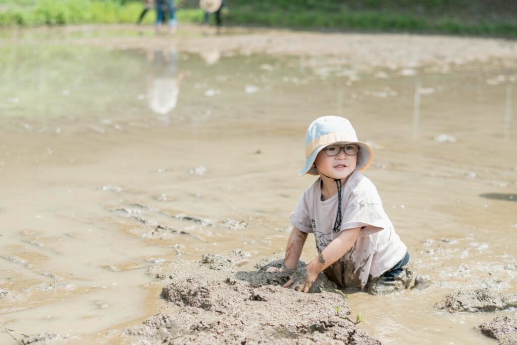 泥を踏みしめ水の冷たさ気持ちよさ光の温かさ