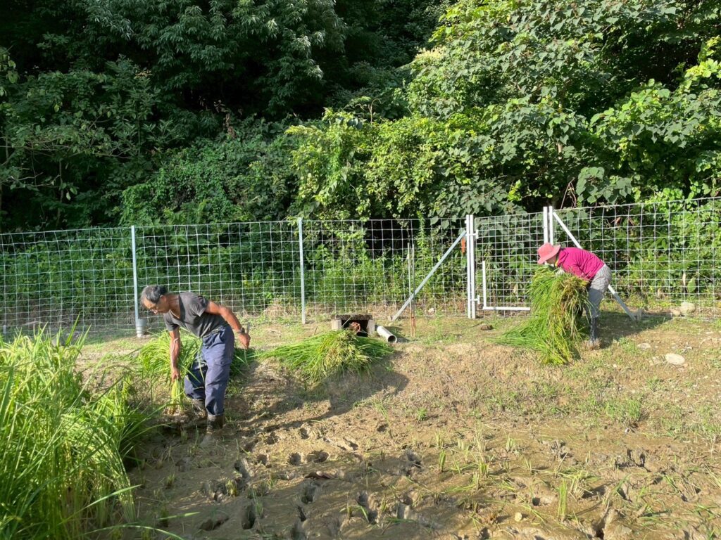 今年は、しめ飾り専用の稲を栽培し、夏に青刈りしたものを使用します。