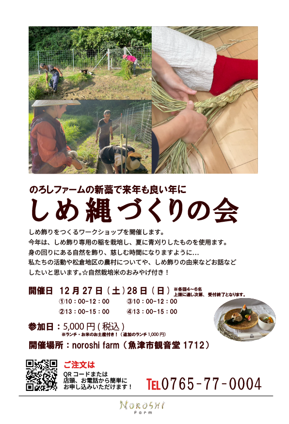 私たちの活動や松倉地区の農村についてや、しめ飾りの由来などお話などしたいと思います。